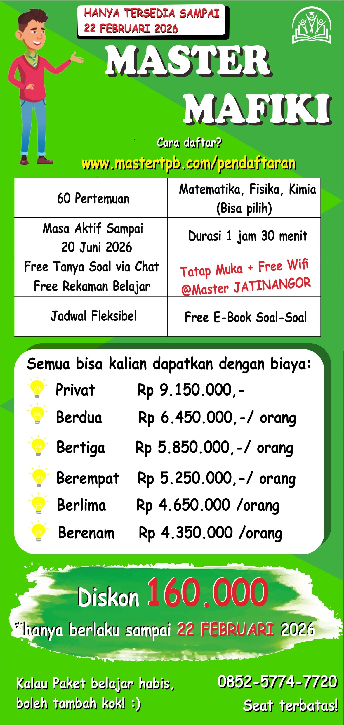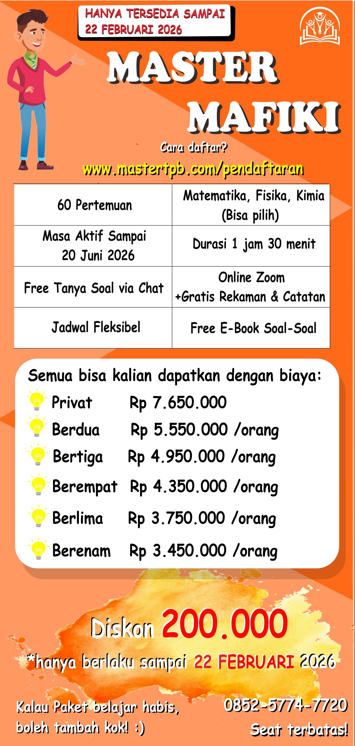 Kali ini ada Paket Belajar Tatap Muka Master MAFIKI 😀